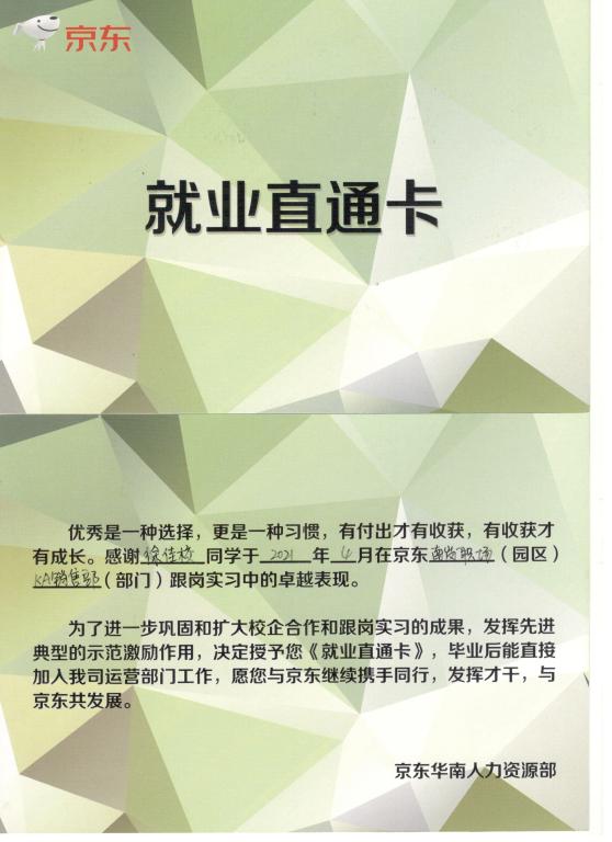 员工大二和大三学年在京东华南区域分公司总部熟悉京东的业务模式和管理信息系统。