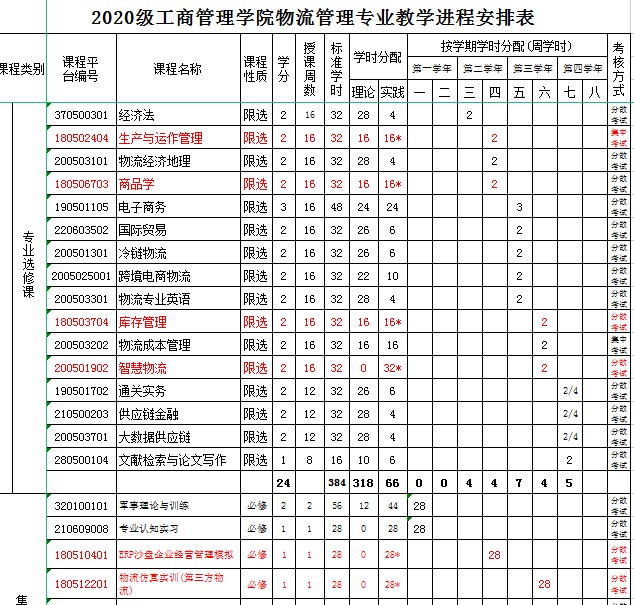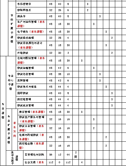 管理公告物流管理专业(2017级京苗班)教学进程安排表(部分)