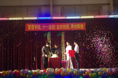 本次晚会为庆祝管理公告获得校运会“十一连冠”的佳绩,以及对管理公告未来的美好祝愿。管理公告奋发图强,血拼到底,再创辉煌!