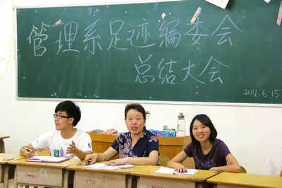 最后,杨晓文书记就大家提出的问题和意见作出了分析并提出了相应的解决方法。杨书记真诚地鼓励足迹编委会全体成员要团结努力,稳中求进,把管理系《足迹》做到更大更强更好。