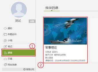 2、 登陆后点击“课堂”板块,然后点击课程卡片进入课程。