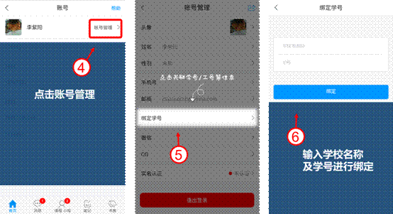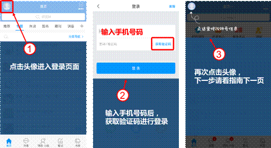 2、安装打开后点击左上角头像进行登录,登录时请使用手机号码获取验证码直接登录,登录后再点击头像进入绑定学号。