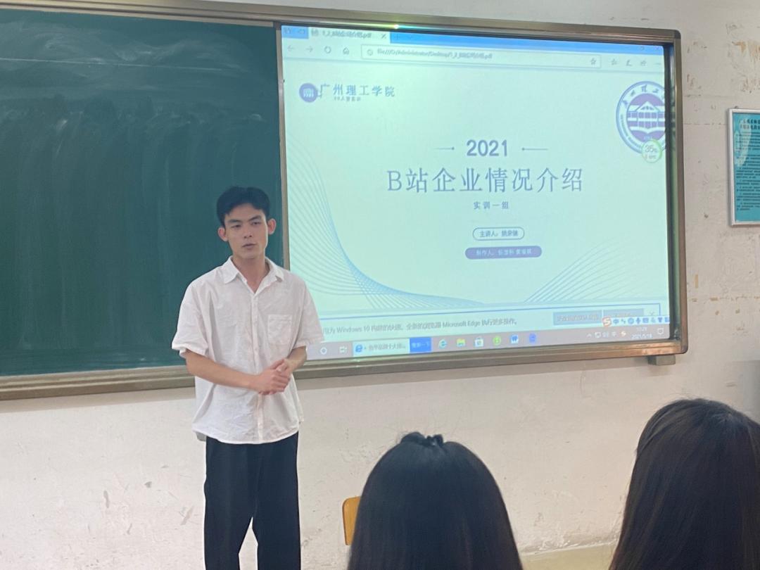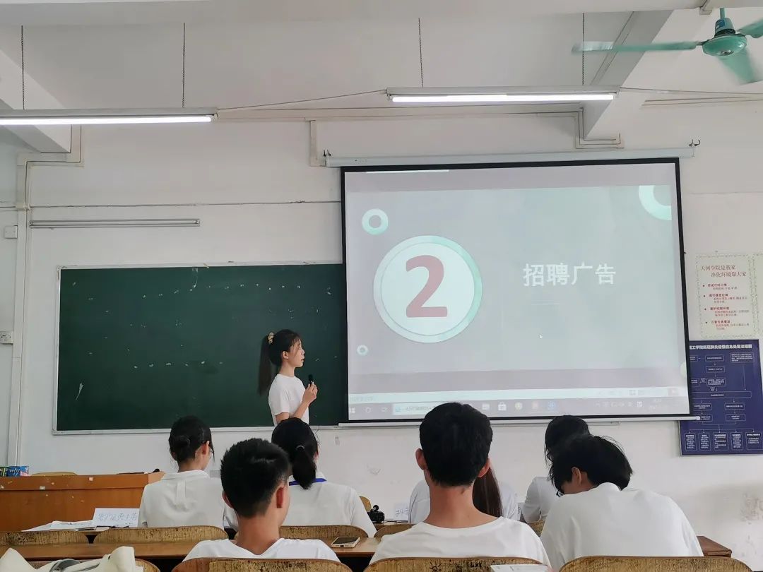实训第一小组,一共有16人,主要是以bilibili为公司背景,通过PPT、视频讲解和现场招聘模拟来展现此次实训成果。作为第一个上场的小组,准备的时间十分紧凑,但完成的效率却是极高。不仅制作了精美的海报、招聘视频与推文来模拟向社会宣传招聘信息;还在应聘者之中设有正面例子和反面例子,充分模拟出应聘时的多样化情况。实训一组特别注重细节,比如全体成员正装出席模拟社会人的打扮、工作者带着工牌、面试现场使用小台签来仿真应聘现场、并设有主持人来控场来保证实训展示进度等等。第一小组的实训为其它小组积攒了经验,让他们能够更好的进行成果展示。
