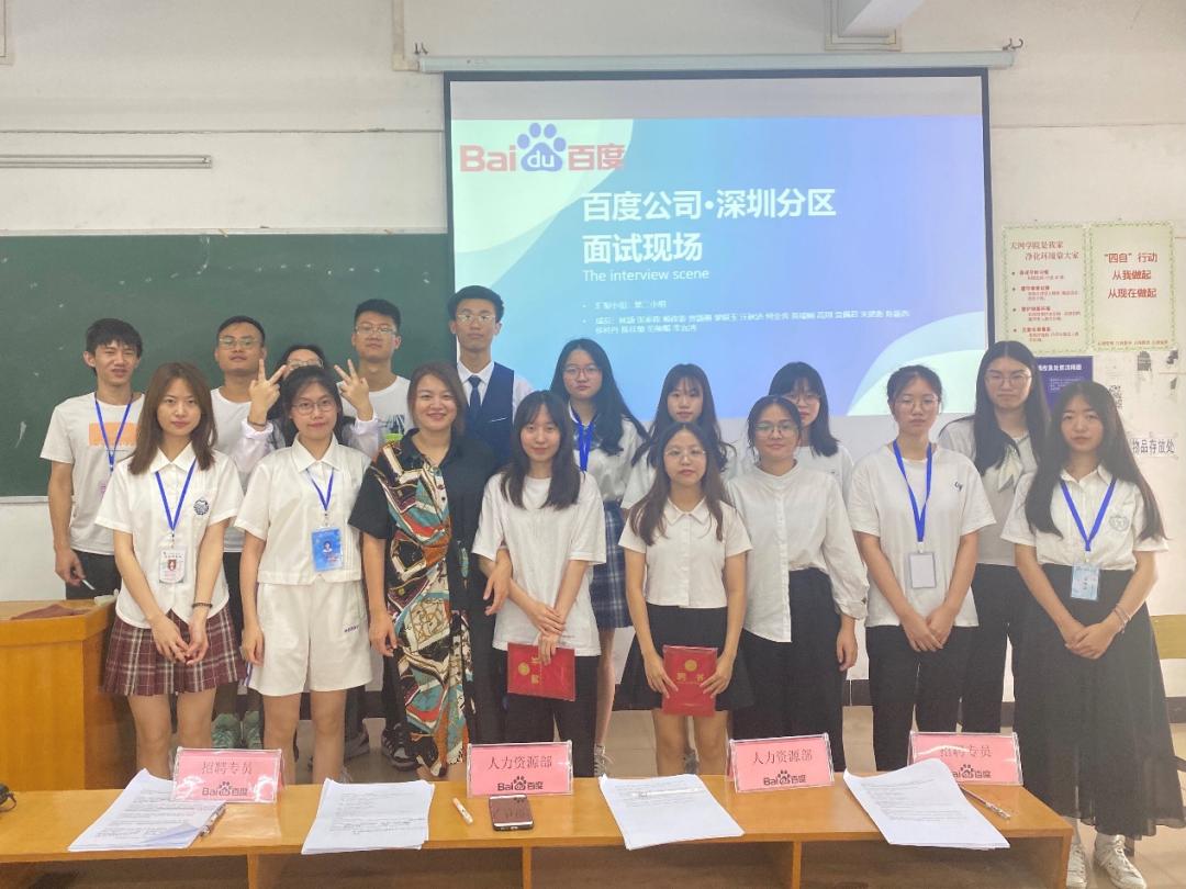 实训第二小组,一共有16人,该组选择百度公司作为本次实训目标。他们主要通过PPT讲解、书面资料、宣传视频、推文以及现场的面试模拟进行展示。