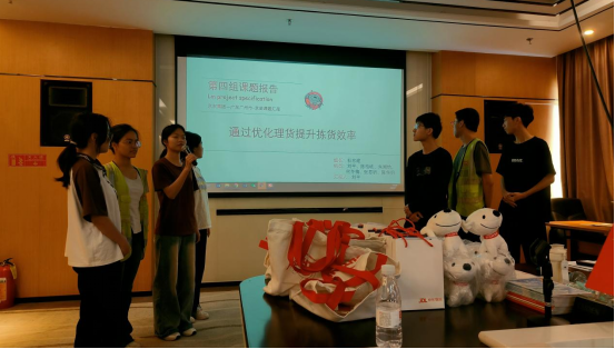 会上,实习生代表依次登台汇报实习期间的课题研究成果。同学们结合轮岗期间在理货、入库、出库等一线岗位的实操经验,通过问题调查、数据分析等环节,进一步提出了流程改进设想和解决方案展示,系统呈现了实习期间的学习收获与实践成果。汇报内容紧贴企业实际需求,展现了公司物流学子扎实的专业能力和创新思维,赢得企业导师与校方的一致认可。