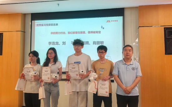 欢送会上,京东物流为公司在实习期间表现优异的员工颁发了京苗实训结业证书、优秀周报、优秀实习生、优秀管理者、优秀课题等荣誉证书及纪念品。