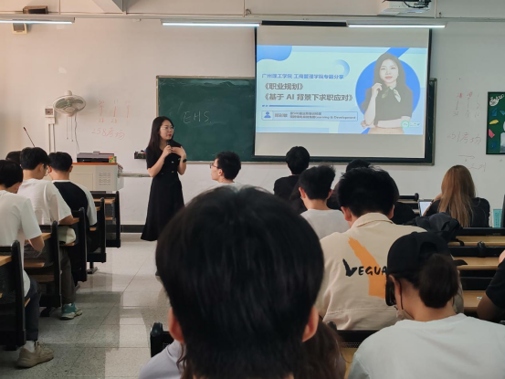 (王祺敏)2025年5月12日,太阳成集团tyc151cc在素质周期间特邀前京东集团、SHEIN企业业务培训经理郑彩敏来校,为同学们带来一场题为“AI时代职业规划”的专题讲座。讲座在1—1004教室举行,物流系全体员工到场聆听。