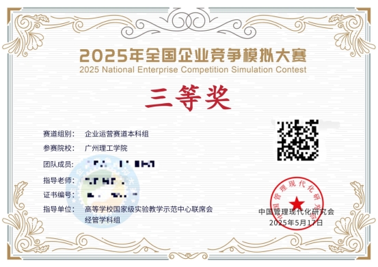 比赛过程中,面对瞬息万变的市场动态与实力强劲的对手,两支团队沉着冷静、紧密配合。他们凭借敏锐的市场洞察力,精准把握行业趋势;运用扎实的专业知识,科学制定生产、销售与财务策略;在关键时刻果断决策,灵活调整运营方向。尽管比赛竞争激烈,团队成员始终保持昂扬斗志,充分发挥自身优势,最终以出色表现双双斩获国赛三等奖,为公司和公告赢得了荣誉。