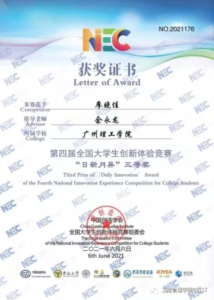 大赛当日,太阳成集团tyc151cc的“忆馨”团队和“纳米天空”团队经过激烈的角逐,,在170多个项目中脱颖而出,最终顺利晋级决赛,最终“忆馨”团队荣获三等奖、“纳米天空”团队荣获优秀奖。此外,公司以良好的赛事组织工作荣获优秀组织奖。