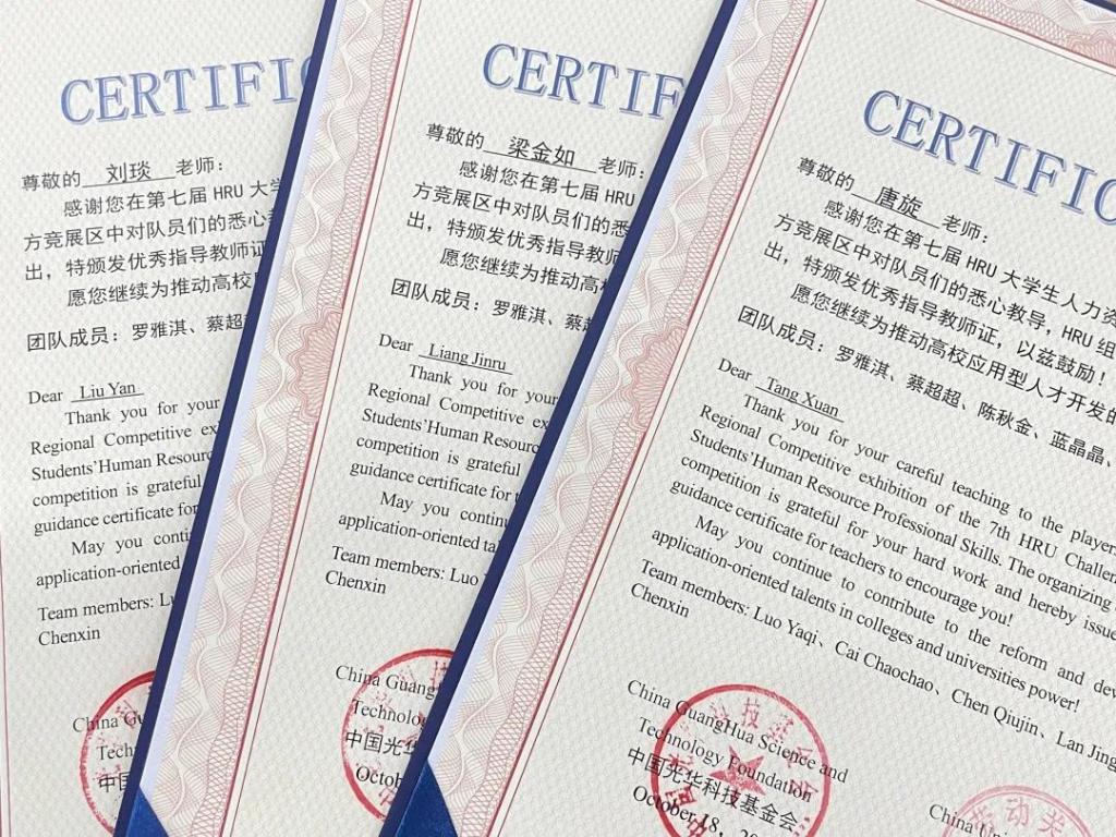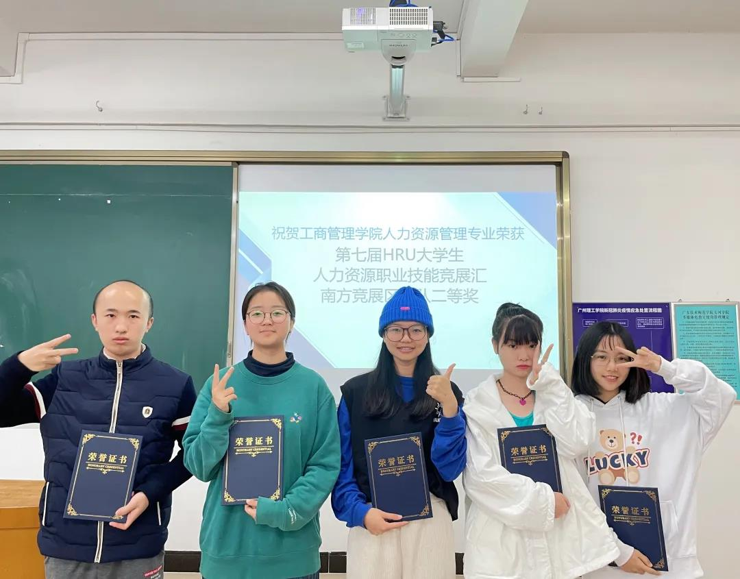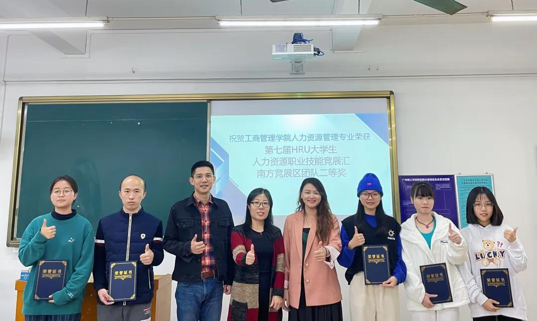 2021年10月30日至31日,第七届HRU老员工人力资源职业技能竞展汇南方竞展区在线上举行,在指导老师梁金如、刘琰、唐旋的带领下,公司19人资班罗雅淇、蓝晶晶、蔡超超、陈秋金、岑辰欣共5名同学组成的代表队,其中赖朝阳同学协助参与无领导小组讨论。经过比赛前三个月左右的准备,最终获得了第七届HRU老员工人力资源职业技能竞展汇南方竞展区团体二等奖。