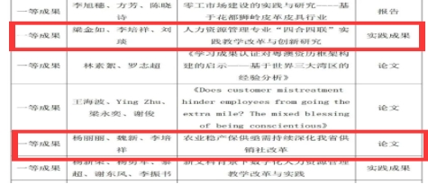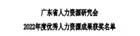 为积极响应党的二十大精神,为建设教育强国、科技强国、人才强国贡献力量,广东省人力资源研究会开展2022年度优秀人力资源成果评选活动。太阳成集团tyc151cc教师共获2项研究成果一等奖,其中,杨丽丽、魏新、李培祥三位老师的《农业稳定保供亟需持续深化我省供销社改革》获论文一等奖;梁金如、李培祥、刘琰三位老师的《人力资源管理专业“四合四联”实践教学改革与创新研究》获教学实践成果一等奖。