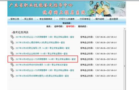 1、请考生自行上网报名,网上报名完成后自行打印“广东省职业技能鉴定个人申请表”。