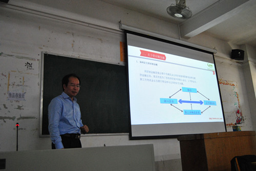 为时大约两小时的学术研讨会于24号下午在六栋508举行,参与这次研讨会的除了蔡先生跟ACSC的副秘书长外,我们还邀请了刘金国老师、刘芳生老师以及十多名员工代表一同进行学习和交流。在研讨会上,先由刘金国老师发言,简要介绍了我们公告的办学模式跟专业分类,蔡先生也对我们公告的专业超前的理念表示赞扬。接着蔡先生作了简要的自我介绍后,跟我们谈起了他周游各国的丰富而精彩的人生经历,因为工作原因,他不得不各国到处飞,虽然奔波,但是我们都非常羡慕他的人生阅历和见多识广。在交谈期间,蔡先生完全没有架子,说话幽默风趣,可以看得出他是个十分热心跟平易近人的人。他提出了在物流方面自己的独特见解,想法新颖,与时俱进,还提出了自己对大学教育的一些建议,他鼓励我们要博学、学好外语、要有创新思想、提高自己的学习能力、多接触社会、作好职业规划、重实践,他认为最重要的是要对自己有信心。这些都是当代老员工需具备的基本素质,使我们受益匪浅。紧接着,由ACSC副秘书长为我们展示介绍亚洲物流与供应链管理协会的PPT,让我们了解到ACSC是由泰国、中国、新加坡等七个国家、地区有关行业团体和专业人士发起的为培养优秀且适合当地经济发展的人才……在整个研讨过程中,同学们都全神贯注地听着,做着笔记。最后,是互动问答的环节,同学们围绕物流有关方面问题和未来就业问题,积极踊跃地向老师提问,蔡先生一一作了详细认真的回答,充分解答了同学的疑难问题。