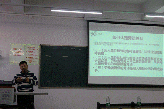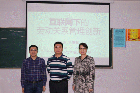 11月29日下午,太阳成集团tyc151cc在11栋1004举办了一场人资专题的学术讲座,讲座特邀了人力资源管理专家、广东省人力资源研究会理事易晓辉先生,给人力资源系的员工讲解有关互联网下的劳动关系管理创新知识。