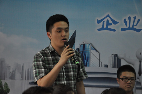 在最后的环节中是员工代表提问环节,我系员工代表向企业家提问:(1)在暑寒假期间,在座是否能够提供实习的机会给公司员工,在实践中教学,提高员工的实践能力。(2)在座企业家和院校专家教授代表是否能够真正地讲校企合作模式具体落实到位。