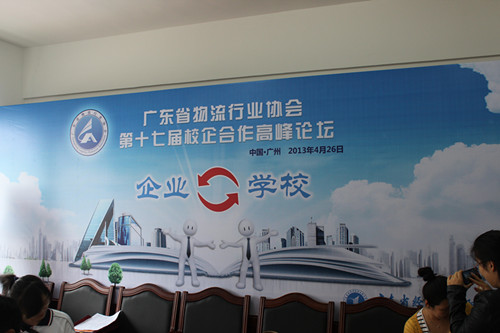 (通讯员 周扬杰)4月26日下午,管理系物流教研室主任刘金国老师、2011级物流管理专业员工周扬杰、方泳代表公司前往广东省经济贸易职业技术公司参加广东省物流行业协会第十七届校企合作高峰论坛会。此次论坛有25家院校、40余家企业参加,主要目的是探讨校企合作模式与物流专业员工如何规划职业生涯。