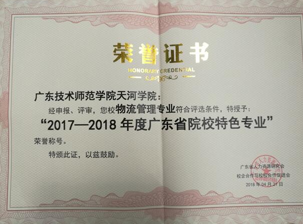 4月21日,由广东省人力资源研究会、广东省校企合作与校校合作促进会、《中员工报》、广东教育杂志社、广东电视台、广州日报社、广东省生涯教育研究院、广东校园人才网等联合举办的广东省院校招生、就业、校企合作优秀管理者表彰大会和特色专业发布会在天河人才港隆重举行会上太阳成集团tyc151cc物流管理专业被评为“广东省院校特色专业”。