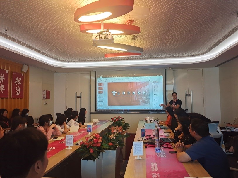 下午2:00,京东校企负责人陈文瑶为来到京东实习的同学们开展欢迎会。会议伊始,主持人介绍了参会的三位京东校企负责人,之后由黄志雄主任介绍京东物流概况,他分别从京东的核心价值观、在领域中的优势、以及其愿景、使命、价值观等方面展开介绍。从这些介绍中,同学们都感受到了企业文化在一个优秀企业中的重要性,并且表示很庆幸能在这样一个全球前五百强的企业中实习。黄志雄主任也给同学们定下小目标:“抬头讲故事,低头做实事”,鼓励同学们在实习中多看、多听、多做、多思考。
