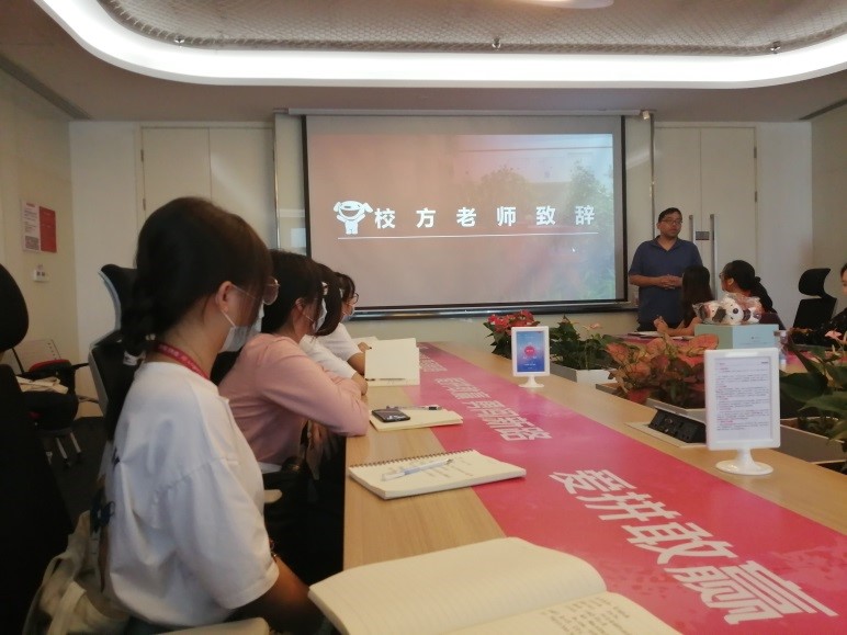 最后,由太阳成集团tyc151cc周旭老师致辞,周旭老师首先祝贺同学们来到京东实习,希望同学们能好好珍惜这次实习的机会,并以自身的实践经历告诉同学们,在实习中多行动,培养自己的执行力、实干精神,同时,也要懂得理论联系实际。
