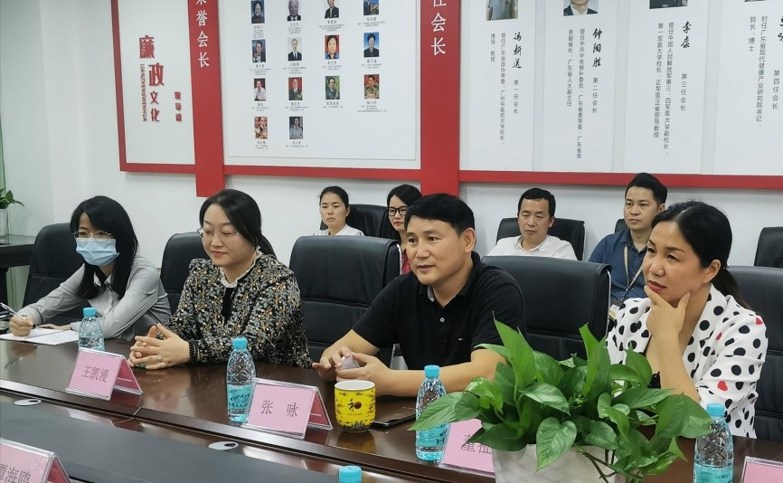 广东省现代健康产业研究院张咏经理主持召开研讨会,研究院董祉童秘书长、王凯漫副秘书长及其他人员出席了本次会议。
