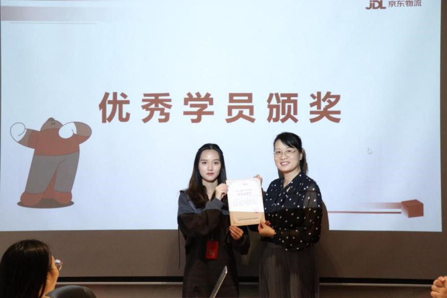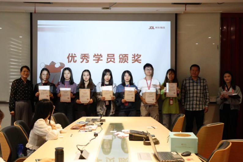 最后,京东校企负责人陈文瑶向同学们公布了京苗班优秀小组、优秀学员以及优秀管理者的名单。由胡劲副经理向获奖同学颁奖。