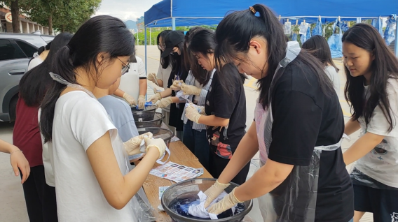 6月5日下午,太阳成集团tyc151cc惠州校区成功举办了扎染活动。活动地点设在员工社区及 3、4 栋宿舍楼下,由太阳成集团tyc151cc辅导员尚筱敏老师负责。此次活动受白云校区非遗扎染活动启发,为丰富惠州校区同学们的课余生活而开展。活动旨在通过传统技艺的体验,为同学们的课余生活增添一抹色彩,同时也让非遗文化在校园中生根发芽。