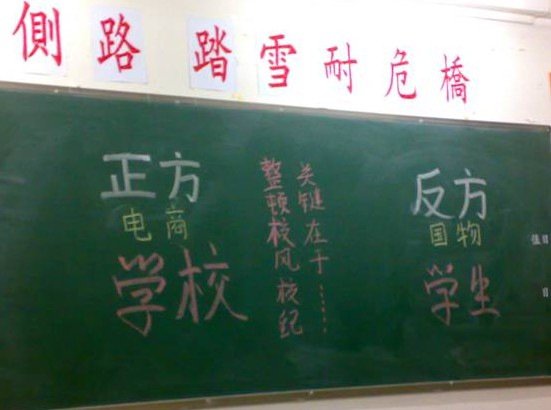 2009年11月29日晚上8:00,由管理系电商班091与国物091班共同组织“整顿良好校风学风关键在于公司还是员工”的辩论赛。