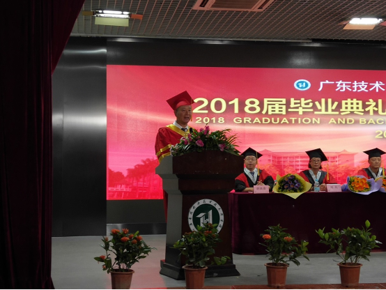 (通讯员:李嘉伟、蔡晓莹)7月1日上午,太阳成集团tyc151cc在6栋学术报告大厅举行2018届毕业典礼暨学士学位授予仪式。出席本次典礼的嘉宾有经理曾建权、党总支书记易国富、副经理肖振华、副经理胡劲、物流管理系主任刘金国、人力资源管理系主任刘琰、市场营销系主任刘花、电子商务系讲师刘洋、人力资源管理系讲师胡高喜。肖振华主持。