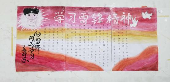 通过“学雷锋”墙报评比活动,让同学们能记住并清楚地认识到“学雷锋”活动的深刻内涵和蕴含的文化底蕴,进一步激发了同学们的助人情怀,有效的增强了同学们的凝聚力和集体荣誉感。