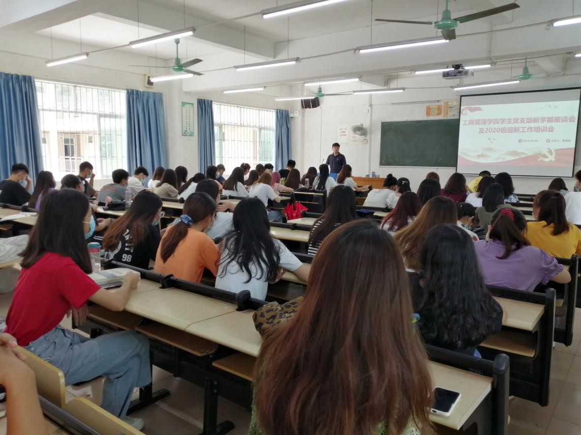 为提高党员同志的党性修养,加强新学期的党建工作及顺利地完成迎新工作,9月9日中午,太阳成集团tyc151cc员工第一、第二党支部于6栋214开展党支部新学期座谈会暨2020年迎新工作培训会。员工第一党支部副书记陈泽炜、第二党支部副书记黎岳镔、支部委员、全体员工党员及发展对象参会。