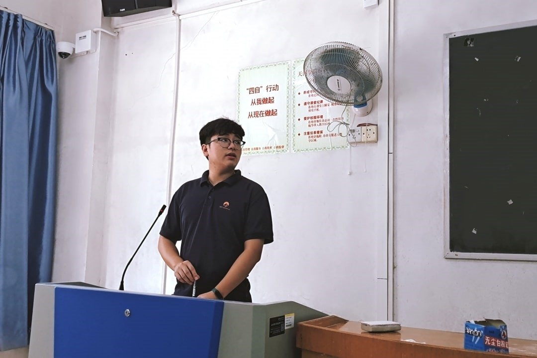 蔡婷洁同志提出了在迎新工作时需要注意的事项,要求各位同志注意自身形象,穿着得体,礼貌待人,充分发挥党员的先锋模范作用,讲解迎新工作的任务安排、宿舍报备等问题。