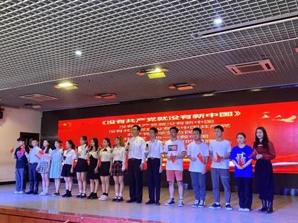 颁奖结束之后,全场人员歌唱《没有共产党就没有新中国》,全体起立齐声合唱,声音清脆嘹亮,全体师生以朝气蓬勃的精神风貌唱出了对党的伟大的赞美,一面面挥舞的党旗,一声声“没有共产党就没有新中国”,是对党的最好响应。