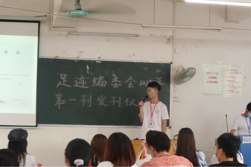 第二环节是足迹编委会会长兼杂志主编莫杰辉师兄上台发言,他代表足迹编委会全体成员向各位领导和来宾的到来表示热烈欢迎,向积极支持杂志制作工作的各级领导、各位教师及足迹编委会的成员表示衷心的感谢!