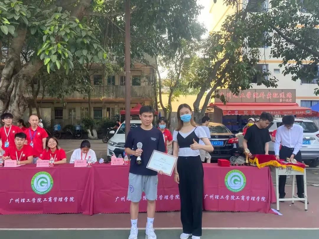 | 团总支副书记兼员工会常务主席颜晓玲为简倩玥以及付宏经颁发篮球赛个人MVP奖 |