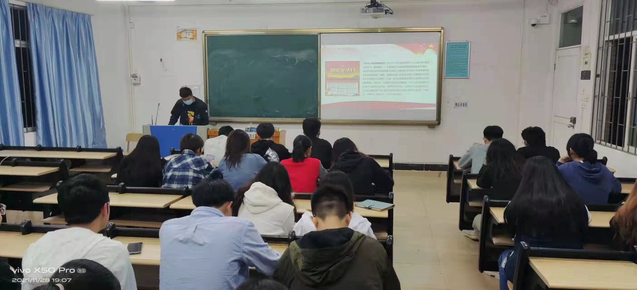 最后,宣讲人举例“2018年宪法修改内容及意义”这一专题,说明我们国家的宪法是与时俱进、在时代洪流中不断完善自身的。而作为新时代下的新青年,我们应该主动承担起责任,在学习生活中主动弘扬宪法精神,履行宪法使命,知宪法、学宪法。