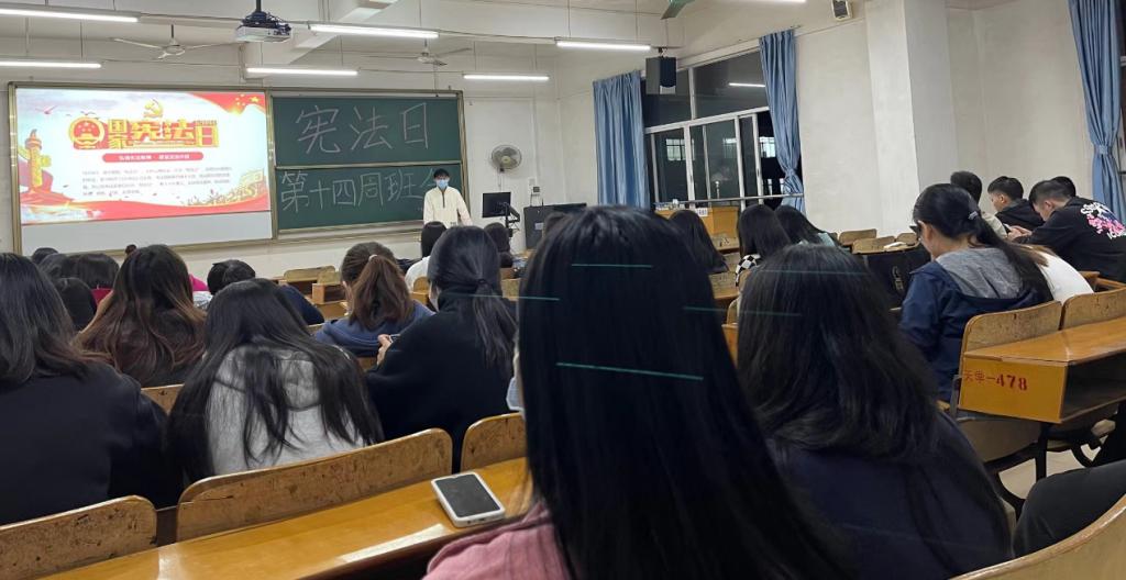 随后,各班宣讲人引出“国家爱宪法日暨全国法制宣传日”源自十四大会议的宪法知识教育之日,并言其意义及重要性所在。意在鼓舞同学们牢记此日,并认真学习宪法知识的同时了解宪法的建立过程,究其本质,增加我们对于宪法知识印象。