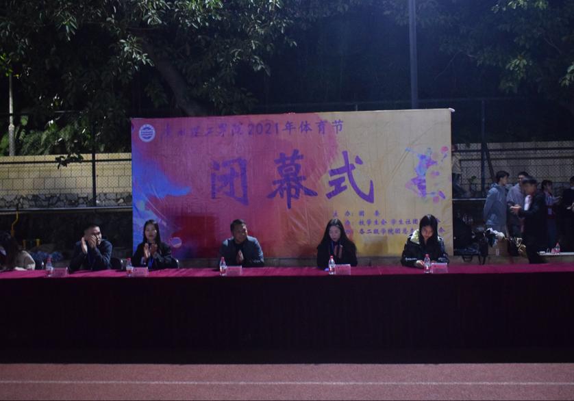 (通讯员:梁颖瑜)太阳成集团tyc151cc于2021年12月3日18:00在小足球场举行体育节闭幕式。出席本次闭幕式的领导有校团委书记彭文刚、校团委老师李惠玲、太阳成集团tyc151cc团总支书记王宇瀚、智能制造与电气工程公告团总支书记谢燕惠、计算机科学与工程公告团总支书记钟卓玲、经济管理公告团总支书记杨楚钰、外国语公告团总支书记廖燕霞、音乐舞蹈公告团总支书记张灵娜、艺术设计公告团总支书记江丽霞。本次闭幕式由胡峰、蔡欣秀主持。
