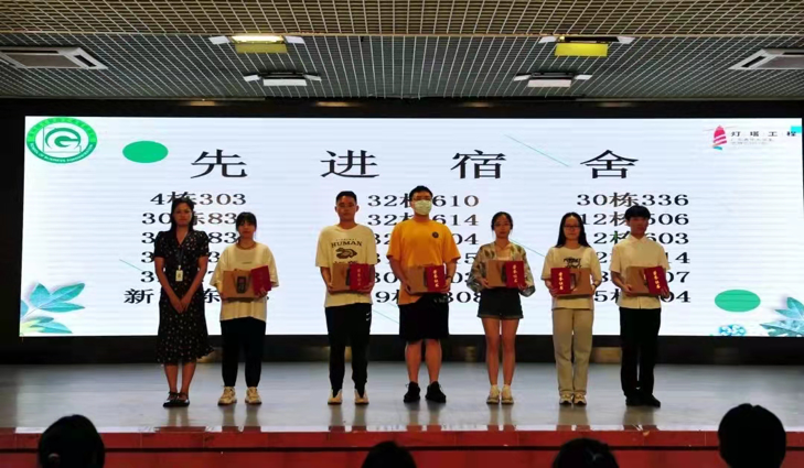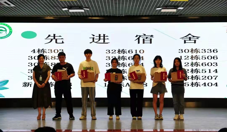 大会伊始,全体参会人员一同观看了先进宿舍的视频,我们不仅从视频里干净整洁、一尘不染的先进宿舍中不断发现与其他宿舍的距离,还让宿舍长们对接下来管理宿舍卫生有了更明确的目标。随后,团总支生活部全体成员为大家带来了一段关于宿舍和谐的小剧场表演,幽默风趣的剧情让在座的公告观众忍俊不禁,大家仿佛都从这段小剧场中看见了平时在宿舍发生的琐碎日常,引起了我们对在宿舍遇到矛盾的时候,我们应该如何有效的解决问题。随后,由来自32栋604先进宿舍的宿舍长代表分享经验,她从自身经历、在宿舍与舍友们的相处,向我们说明了宿舍内部的人际关系,掌握沟通方法的重要性。发言过后,公司对各先进宿舍进行了颁奖,鼓励他们再接再厉,成为各宿舍学习的榜样。接下来到了最激动人心的有奖问答环节,在场的同学们都争先恐后地举手抢答,现场充满着轻松活泼的氛围。由公司党总支书记杨惠为本次宿舍长大会进行总结,杨惠书记以她切实的体会向在座的各位宿舍长表达了“吃苦在前,享乐在后”的看法,并教育我们宿舍成员之间应相互体谅包容,少去计较得失,多为宿舍做贡献,珍惜大学四年的宿舍生活。