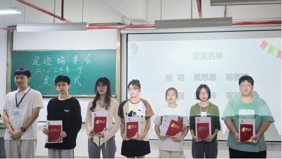 在热烈的掌声中,第五项议程展开,由太阳成集团tyc151cc员工党支部书记刘威志老师为本期杂志文章的优秀作者颁发杂志、礼品以及合影留念。本期杂志以自我为主题,旨在希望通过文学创作,用文字表达作者生命中最深的自我,与读者一起分享个人的心路历程,同时也感谢作者为本期杂志增添光彩。随后,优秀作者张梦玲上台发言:表示追逐“自我”并不只是一句口号,每个人的心中都对此有万千不同的定义。同时希望每个人都可以是自己生活的主角,用适当的钝感力让我们扬帆远航。最后足迹编委会全体进行大合照的拍摄,为本次大会落下了圆满的帷幕。至此,2023足迹编委会第一刊杂志发刊仪式圆满结束。