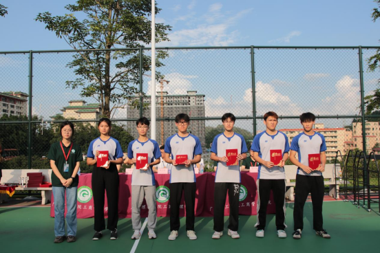 颁奖正式开始,首先由员工会执行主席邹怡清为优秀裁判团颁奖,获奖人员:蒙高伟、黄宇洋、陈茵仪、陈业桦、何子杨、熊沥;由雷霄老师为季军颁奖,获奖队伍:21人资队(男篮)。由罗杰老师为亚军颁奖,获奖队伍:女篮A队、20人资队(男篮);由刘威志老师为冠军颁奖,获奖队伍:女篮B队、20营销1队(男篮)。由张应利老师为三分大赛冠军和最有价值球员颁奖,三分大赛冠军获奖者:刘豪富;最有价值球员者:黎宇航(男)、黄嘉敏(女)。最后,主持人宣布颁奖仪式结束,全体工作人员及嘉宾合影留念。