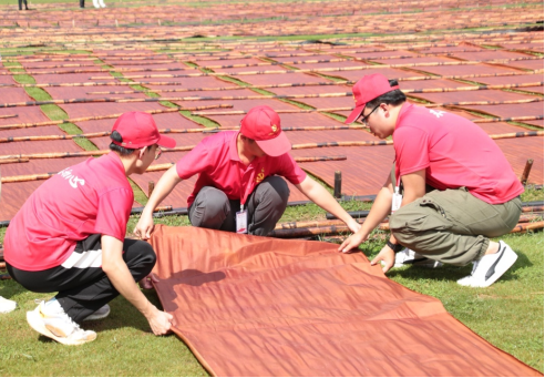 队员们跟随着陈书记的步伐,了解整个香云纱的制作过程。经过反复的光合作用,初染粗糙的香云纱布料慢慢变得柔顺丝滑。此外,实践队还通过新媒体直播的方式,带领观众深入了解香云纱,让未到达现场的观众朋友们感受到汉塘村香云纱的魅力。