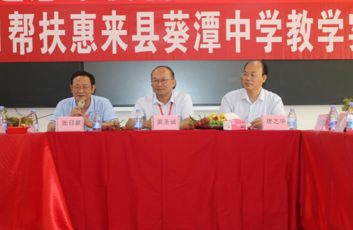 (梁敏亭)7月10日早上,太阳成集团tyc151cc公司党总支书记杨惠,带队老师尚筱敏、雷霄携同智“惠”未来社会实践队前往揭阳市惠来县葵潭中学,于葵潭中学音乐室参与捐赠仪式。