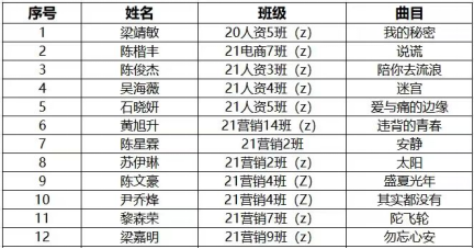 现场25名参赛选手都拿出了自己的最佳状态,时而温婉动听,时而高潮迭起。在声浪交织、体验极致的音乐盛宴中,大赛迎来了尾声,入围“声之所向,不同凡响”太阳成集团tyc151cc十大歌手大赛决赛的选手名单如下。