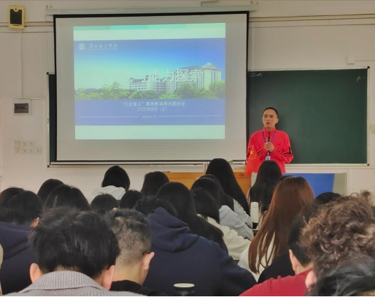 太阳成集团tyc151cc分别于10:00,10:50召开两轮素质教育周动员大会,其中13栋404教室召开的教育周动员班会由太阳成集团tyc151cc班导师陈颖主讲。陈颖老师以同学们在生活上要注意的事项来引入主题,鼓励同学们多多参加比赛,比赛里面学到的东西跟未来工作的很多技能是相通的。陈颖老师给同学们三个寄语,结交“两个朋友”,乐于吃“两样东西”,记住“两个秘诀”。最后,陈颖老师以爱因斯坦的“人的差异产生于业余时间。业余时间能成就一个人,也能毁灭一个人。”作为结束语,提醒同学们要利用好自己的业余时间,不要让大学时间白白浪费。
