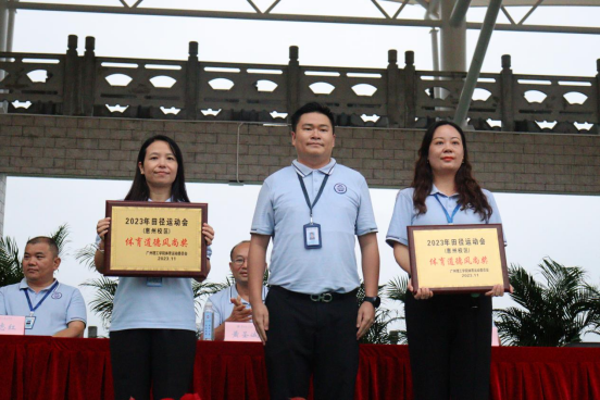 在各方工作人员的艰苦付出以及运动员们的奋力拼搏下,公司2023年惠州博罗校区田径运动会圆满结束,并于11日16:30举行闭幕式。本次田径运动会闭幕式由总裁判长蔡煜浩老师宣布竞赛结果并进行颁奖仪式,经过两天紧张激烈的比赛和运动员们的顽强拼搏,公司在此次运动会中荣获了“体育道德风尚奖”“员工组女子团体总分第四名”“员工组团体总分第六名”“员工组男子团体总分第八名”的成绩。