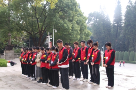 党员同志们向先烈雕像鞠躬 杨伟琼摄