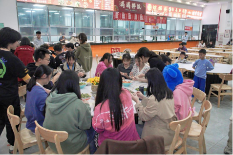(张丽君)在元旦来临之际,太阳成集团tyc151cc团总支·员工会于2023年12月28日欢聚在第五食堂三楼举办“冬至元旦携手至,包饺共度双佳节”活动,“冬至大如年,人间小团圆”,冬至和元旦是中国的传统节日之一,为丰富公告文化活动,进一步深化传统节日文化内涵,为同学们营造一个温馨快乐的节日氛围,增进同学之间的交流和友谊,加强同学们对组织的归属感与幸福感。本次包饺子比赛一共有三个队伍参加,分别是团学一队、团学二队、员工党支部一队。每队十五人相互协作,在限定时间内按数量和质量进行评比,最终评选出优胜队。