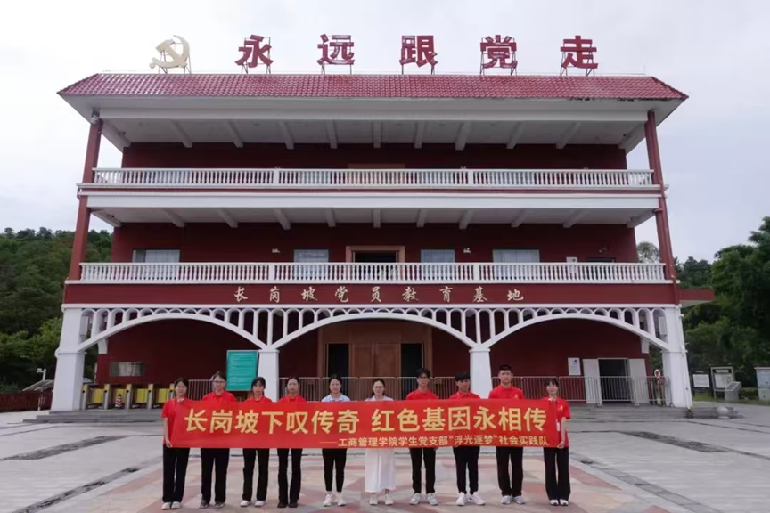 在长岗坡党员教育基地前合影留念 (邱晨曦 摄)