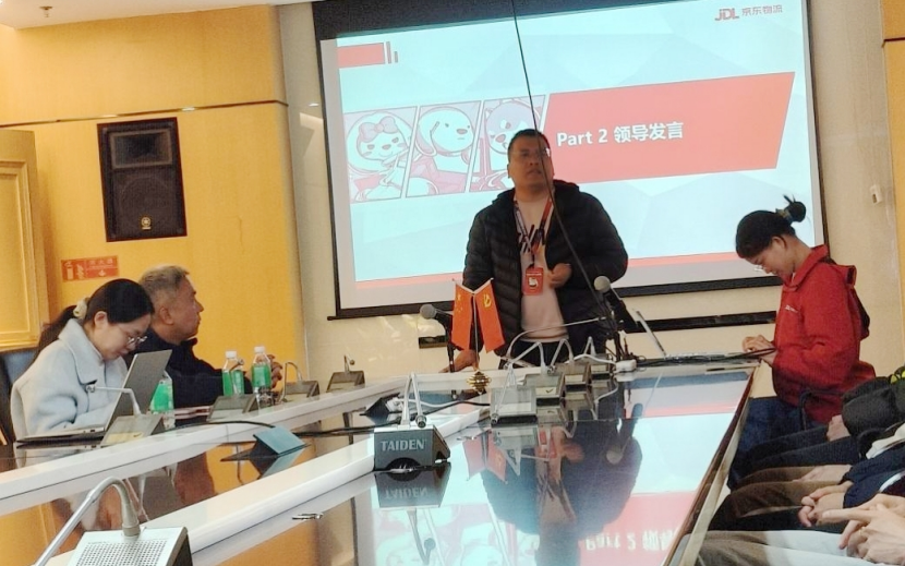 随后,京东广州人资渠道负责人任家通先生结合行业特点与员工发展需求,发表讲话。他首先阐释了京东“客户为先”的核心价值观,强调服务意识与责任担当的重要性;其次,从职业规划角度出发,建议员工“立足基层、脚踏实地”,通过一线岗位的历练了解物流运作流程;最后,他深入分析了物流行业“劳动密集型与技术驱动并存”的现状,鼓励员工把握机遇,提升综合竞争力。