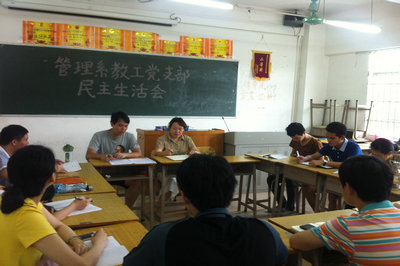 本系讯(通讯员:林成园)5月22日,根据公司党委《中共广东技术师范公告委员会关于认真做好2013—2014学年民主评议党员工作的通知》文件精神,我系教工党支部在经管楼309组织召开了民主生活会,我系党总支书记杨晓文同志、教工党支部党员参加了会议,会议由教工党支部书记钟清恒同志主持。